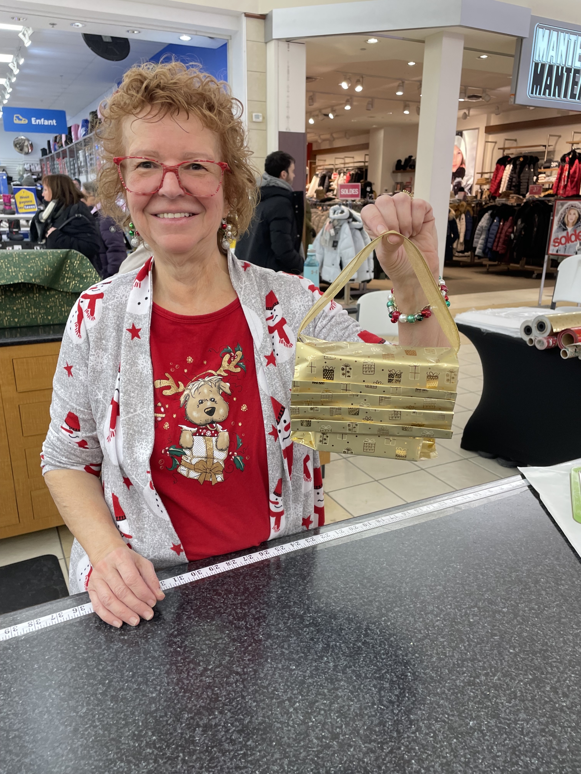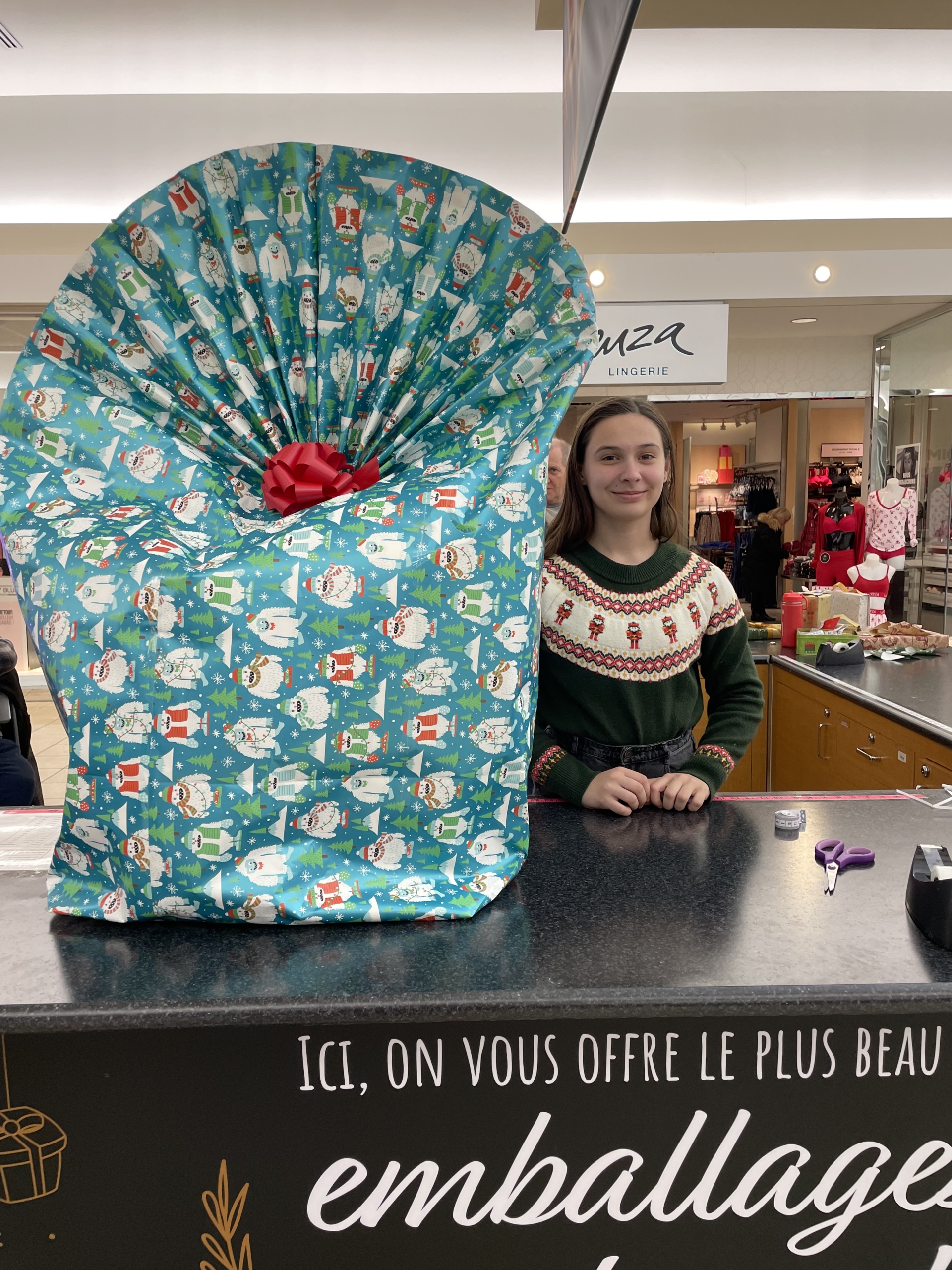 Si l’achalandage a été plus lent au début, les derniers jours ont été tout un défi puisque nous étions très occupés, les clients venaient avec tous leurs cadeaux à envelopper comme le démontre les photos.