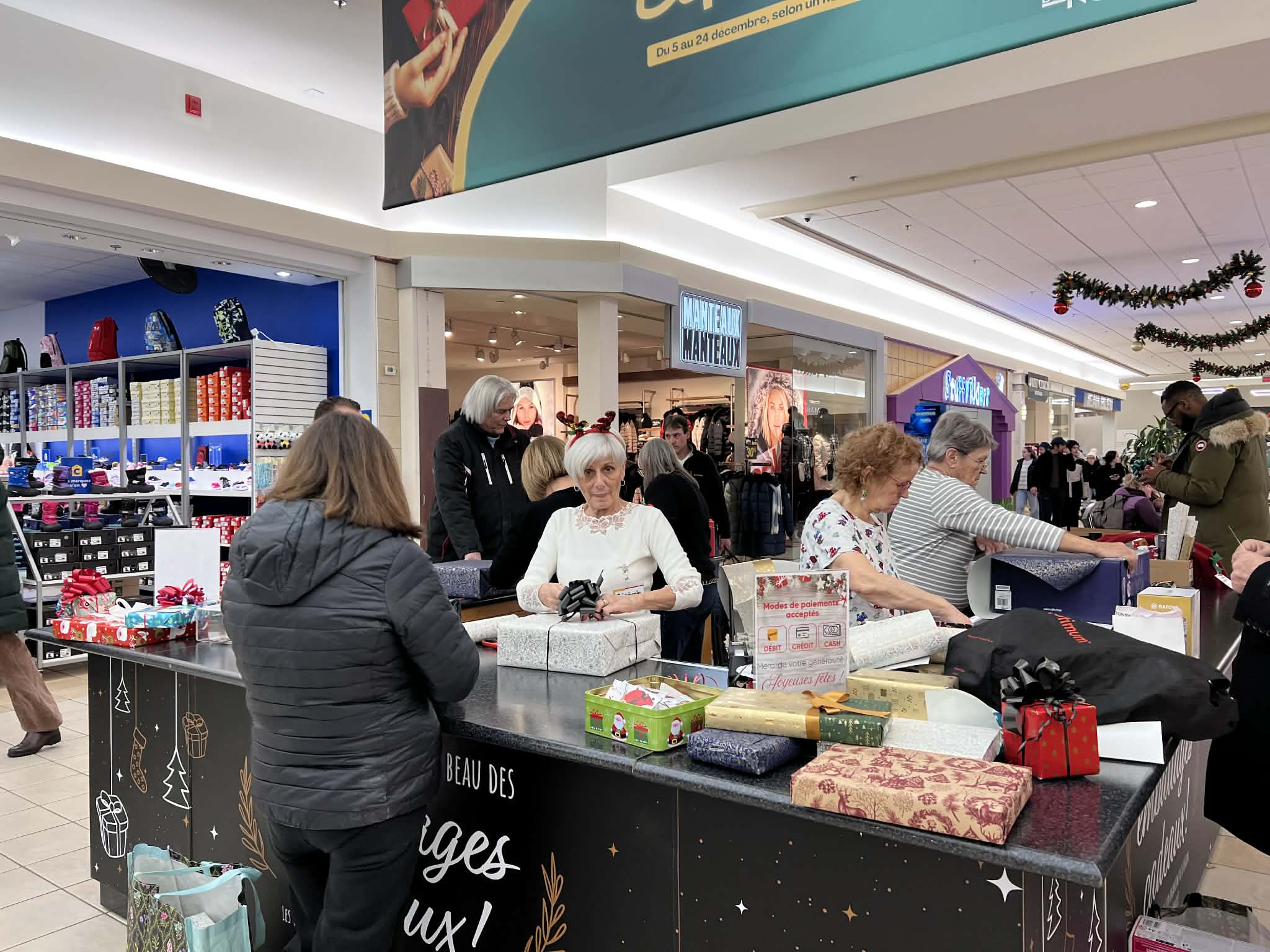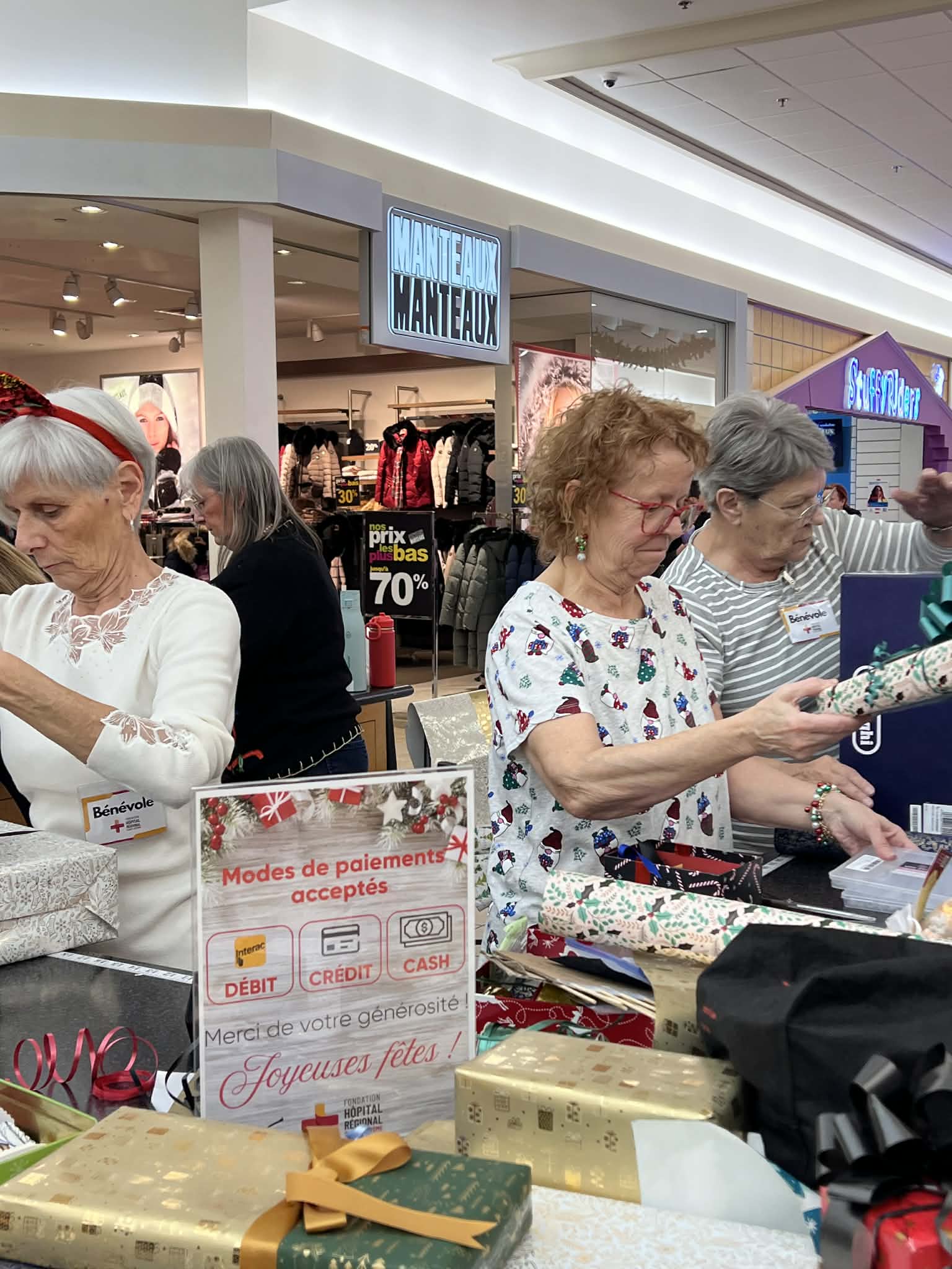 Durant le mois de décembre dernier, pour une 5e année, des membres de l’amicale et amis(es) ont été présents au kiosque de l’emballage cadeaux au bénéfice de la fondation de l’hôpital St-Eustache.