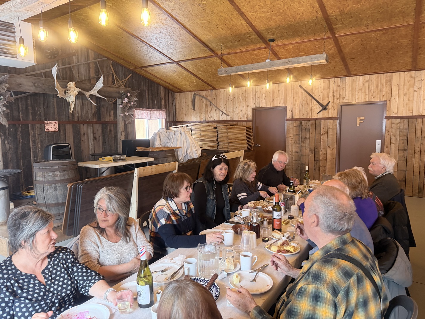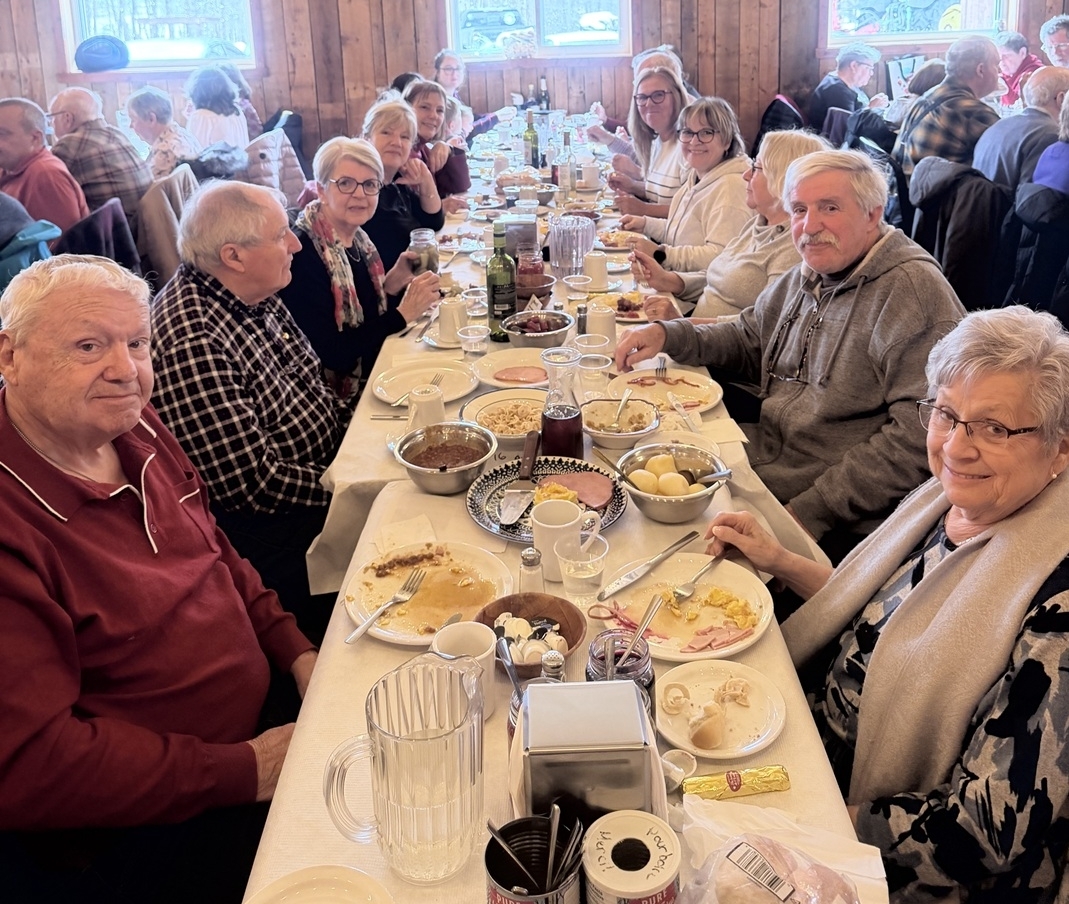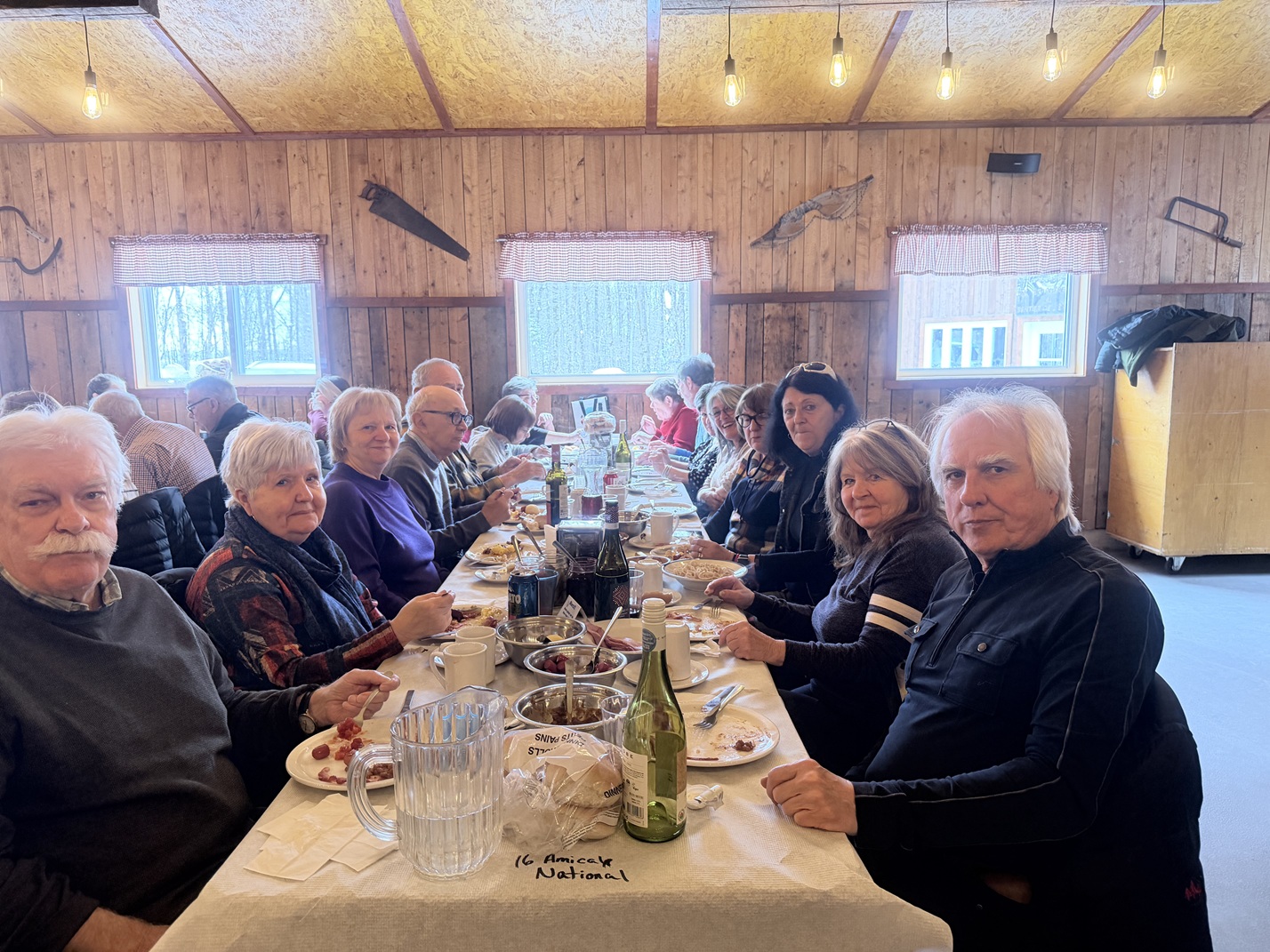 Notre groupe de 34 personnes a occupé 2 grandes tablées. Comme par les années passées, la nourriture était très bien et comprenait tous les mets que nous retrouvons à la cabane et cela à volonté. Ce fut une belle journée pour revoir nos collègues de l’Amicale et pour festoyer et souligner l’arrivée du printemps avec nos invités. Que serait le printemps sans cette tradition de mets sucrés au sirop d’érable 😊!