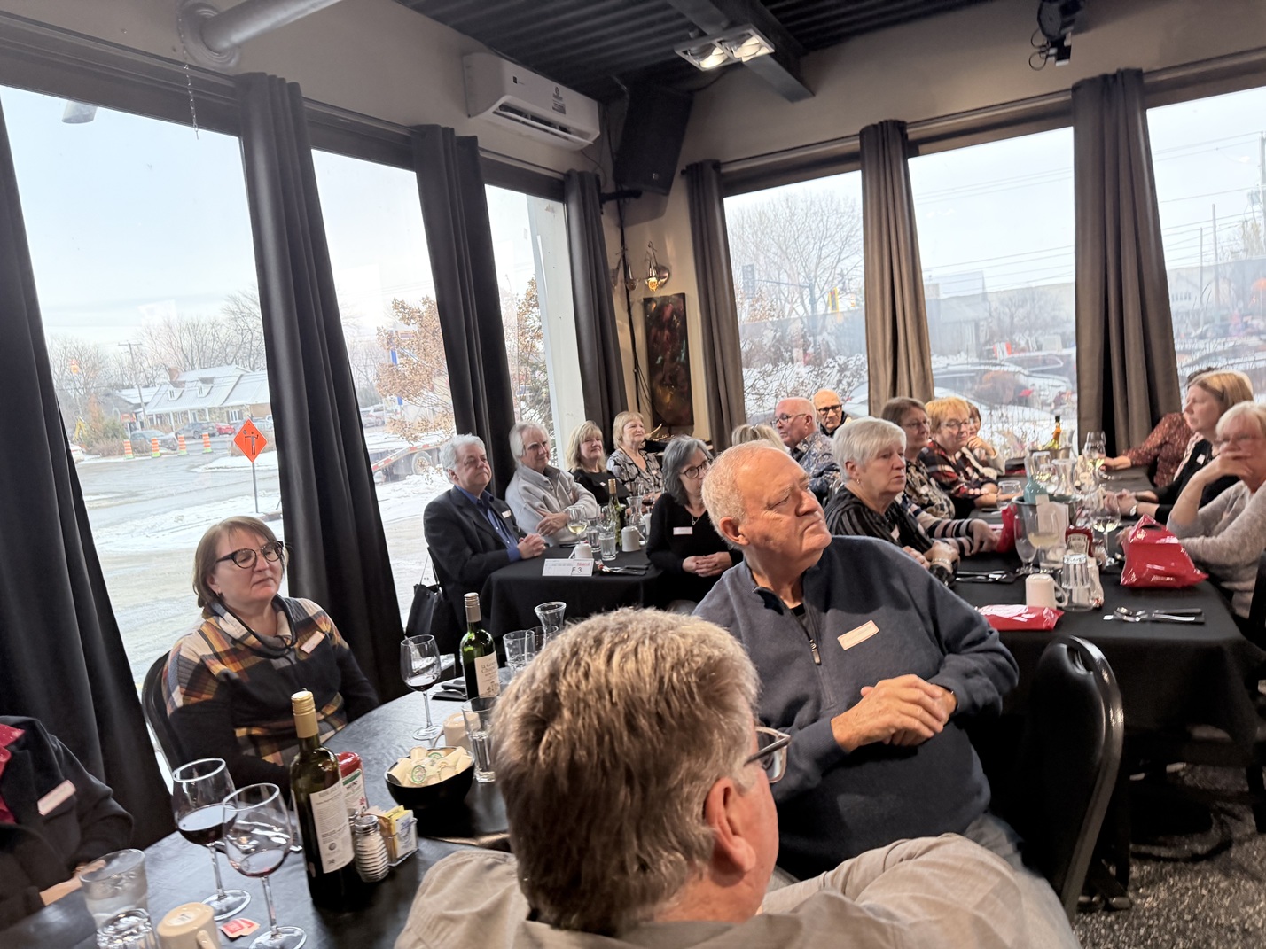 Notre président sortant Roger Bilodeau nous a résumé l’année 2024-2025 et il nous a aussi présenté son remplaçant Daniel Whelan, élu lors de l’Assemblée annuelle le 26 novembre dernier. Robert Grondin notre trésorier, nous a résumé les finances de l’Amicale. D’autres personnes du CA étaient également présentes soit Marie Lamoureux et France Bélanger.