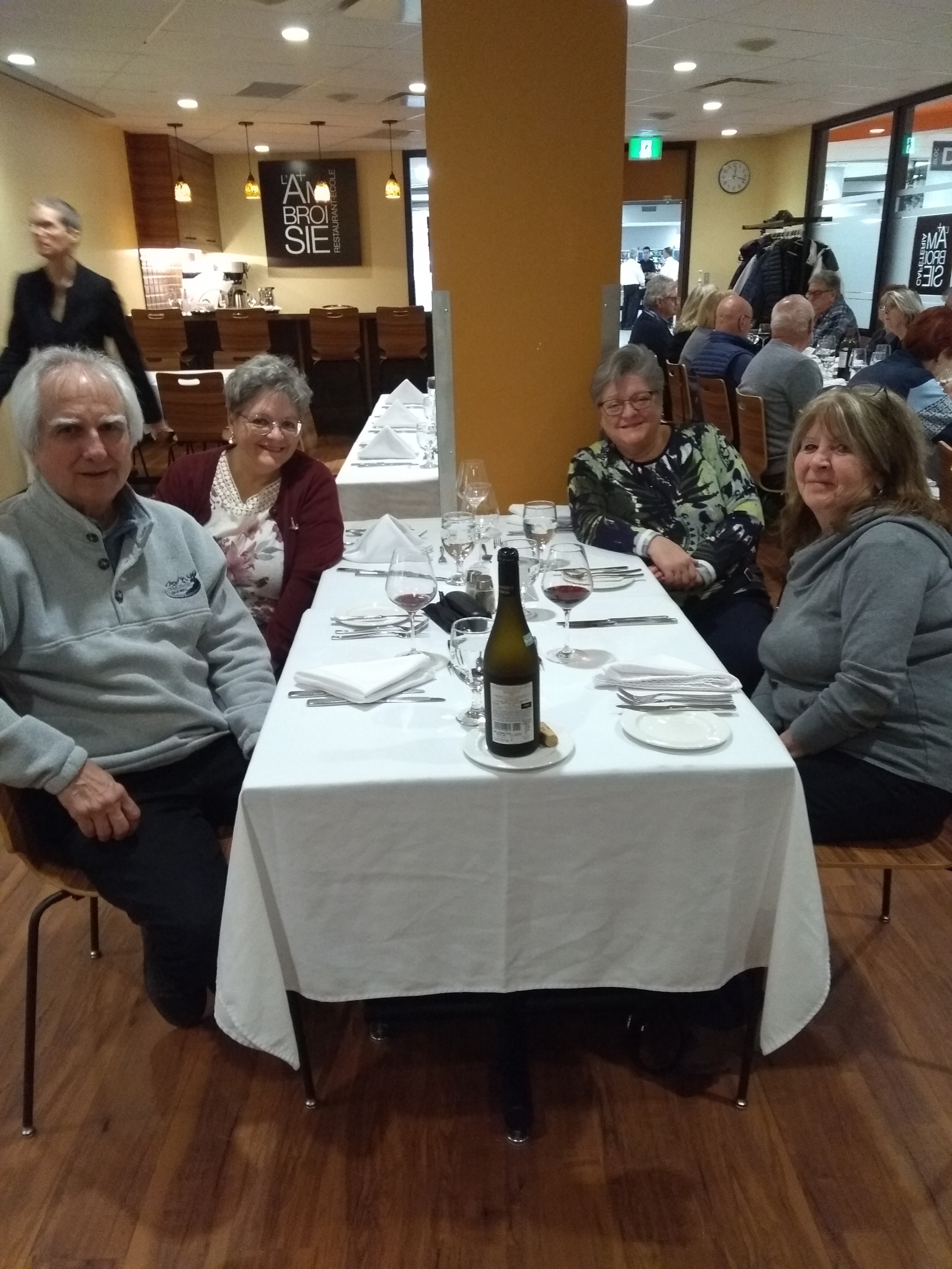 Dame nature étant d’une humeur maussade, on se demandait si on devait maintenir notre dîner au resto-école l’Ambroisie le jeudi 12 mars 2026. Heureusement, elle a finalement retrouvé sa bonne humeur et c’est en toute sécurité que nous avons tous pu nous y rendre.
