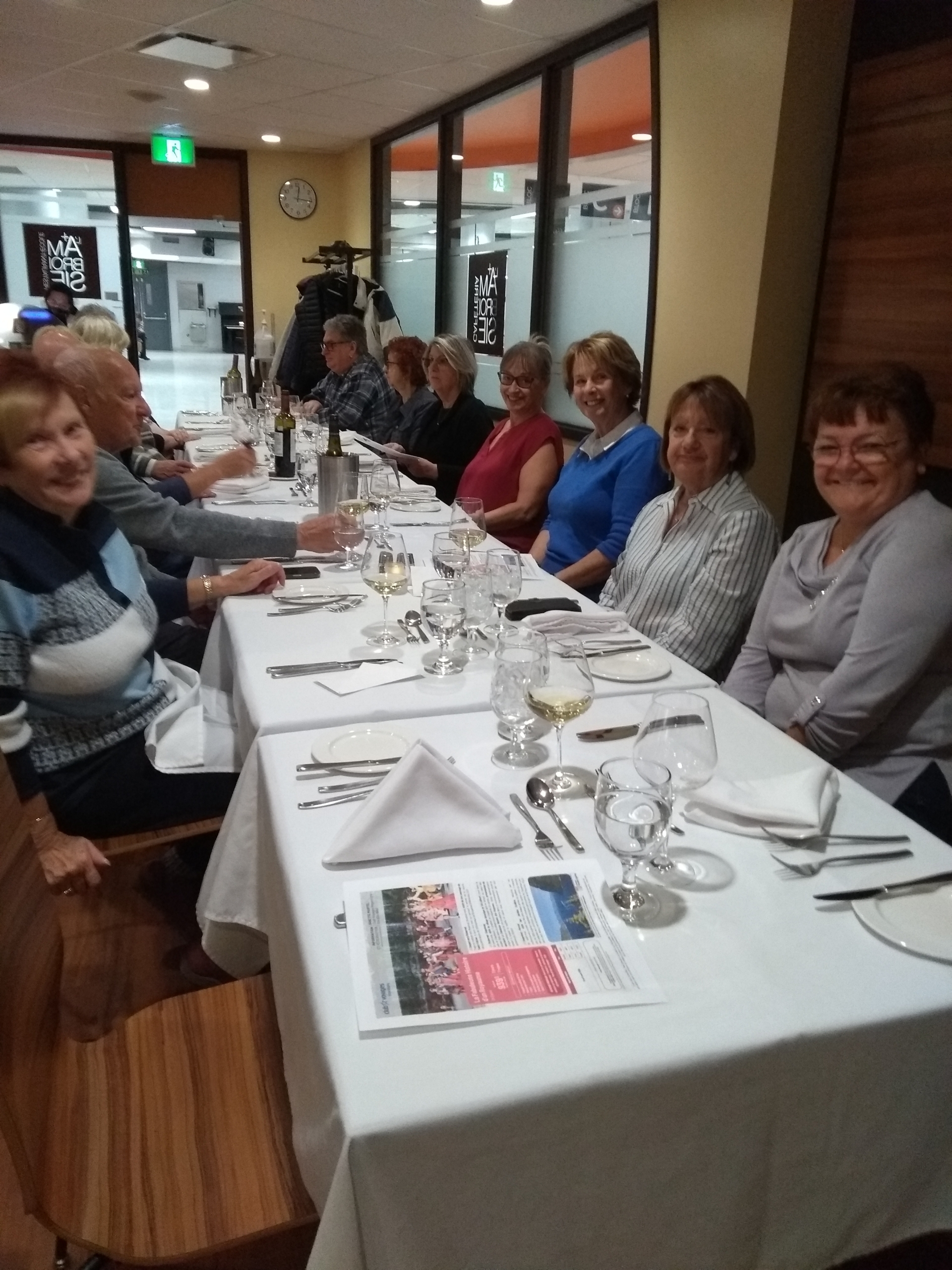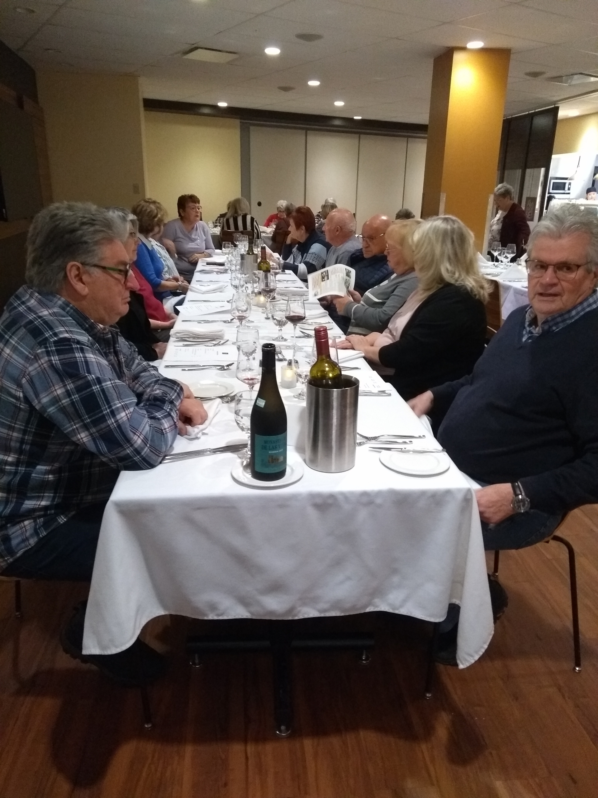 Encore une fois ce fût un excellent menu à la carte, 3 services, avec 4 choix d’entrée et 4 choix de plats principaux, dont les prix très abordables, variaient entre 16 $ et 22 $ avec l’ambiance d’un petit restaurant de quartier. Un beau choix d’entrées et de plats principaux. Certaines personnes ont même trouvé les portions généreuses pour leur petit appétit d’oiseau. Les desserts, gâteau au fromage et brownie, étaient délicieux. Merci à tous nos participants pour leur belle présence.