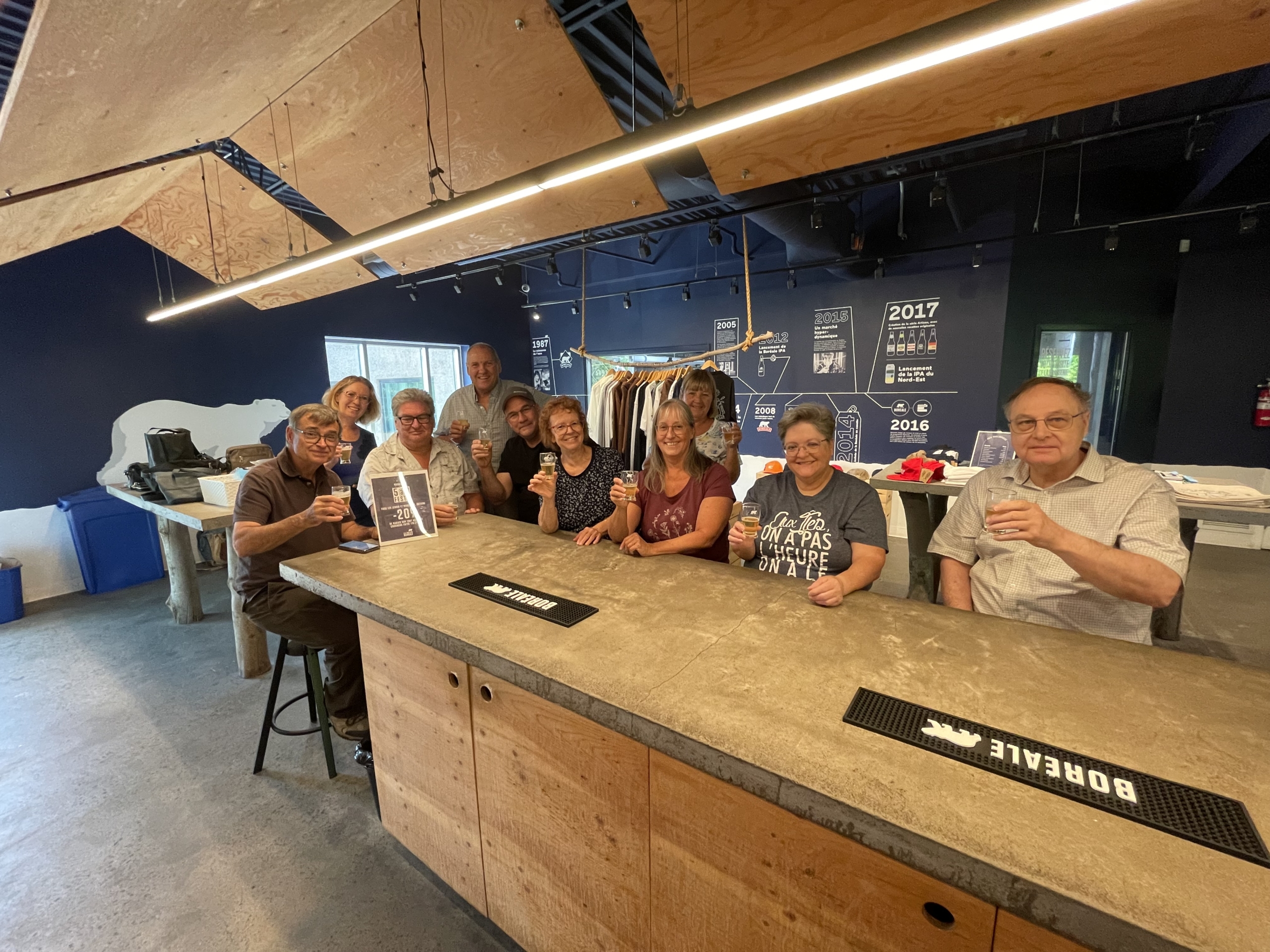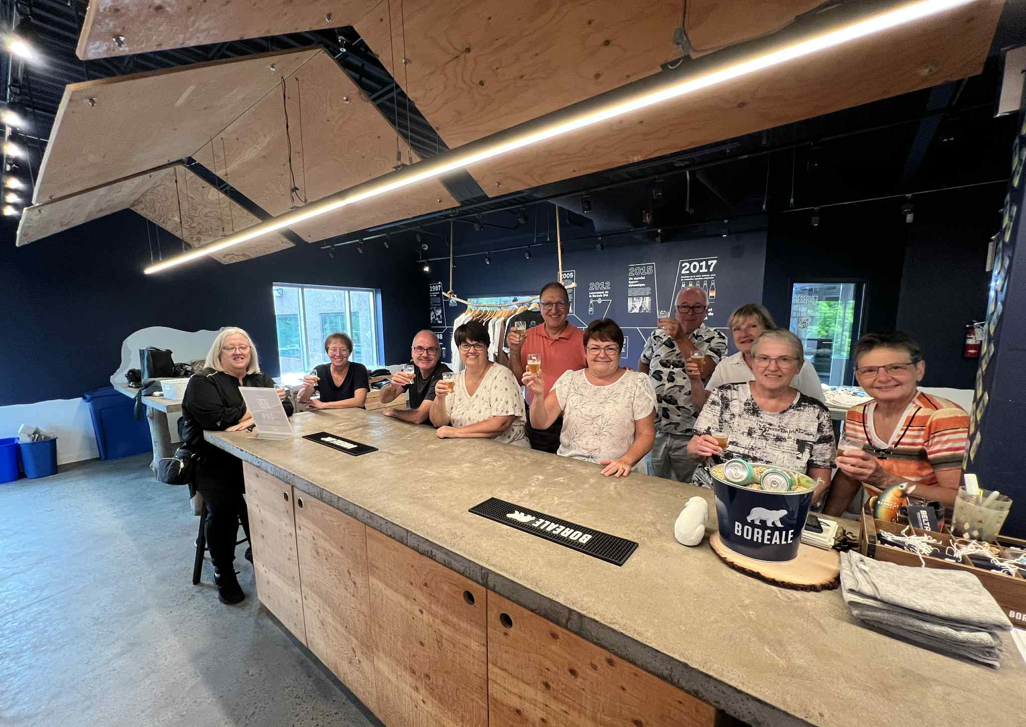 Nous nous sommes par la suite rendus au Relais Boréale, du 875 boulevard Michèle Bohec, pour la visite de l’usine et une dégustation de bières. L’animateur était tout surpris de l’importance du groupe, puisqu’on était le plus grand nombre qu’il ait eu à date. Nous nous sommes séparés en 2 groupes, l’un a fait la visite et l’autre les dégustations.